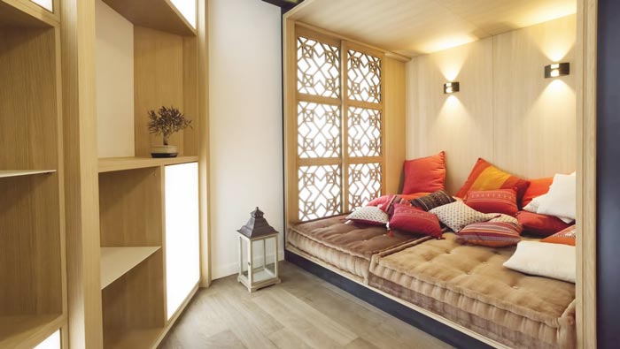 休息區域的設計:此處采用的是層級的變化,以此來提升空間的承載能力,一個小小的坐墊就完成了整個空間的設計,這樣的設計看起來簡單又實用,在設計師看來設計本身就是簡簡單單的,沒有必要搞得過于復雜,員工在這樣的空間之中可以去除心中的隔閡,展望美好的未來,讓其中毫無阻礙。