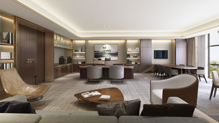 杭州集團公司董事長辦公室裝修設計效果圖