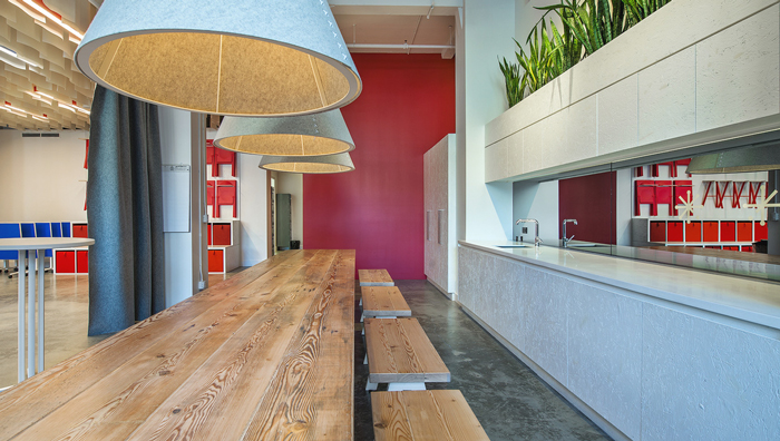 茶水間交流區(qū)的設(shè)計(jì):此次給員工營造一個良好的交流區(qū)域,落地窗的設(shè)計(jì)設(shè)計(jì)師采用半透明半磨砂的方式,目的就是即希望空間可以保持明亮,同時也不會被強(qiáng)光所影響,設(shè)計(jì)師重點(diǎn)在于強(qiáng)調(diào)環(huán)境的構(gòu)成,其原動力就是希望給員工一個優(yōu)質(zhì)的辦公環(huán)境。