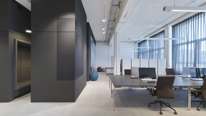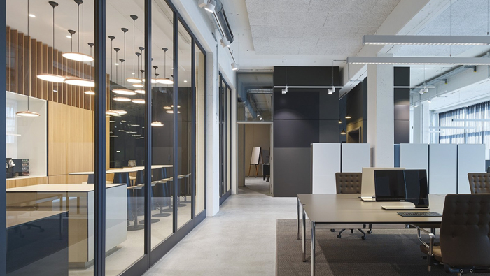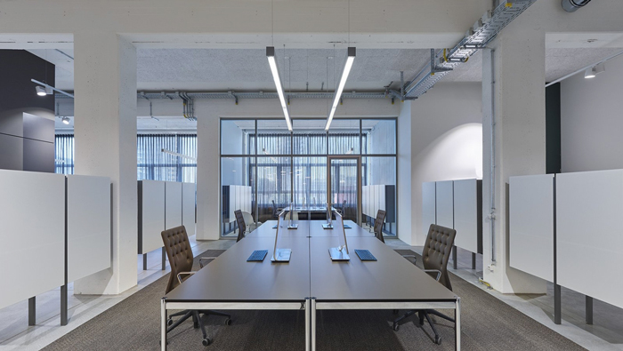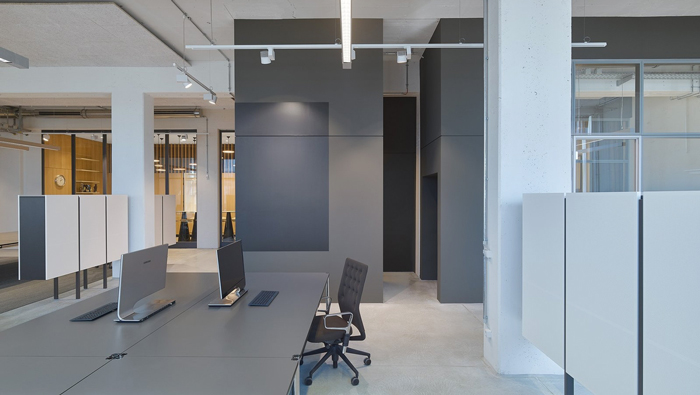 辦公區域細節的設計:此處可以看出設計師在辦公桌的選擇上,可謂是煞費苦心,設計師的目的就是希望簡單可以進行到底,設計師希望為員工打造一個舒適、輕松的辦公場所,辦公桌在員工平時的辦公中意義十分重大,故此設計師希望員工可以自己去安排辦公桌上的裝飾,這可以最大程度上照顧到每一個人。