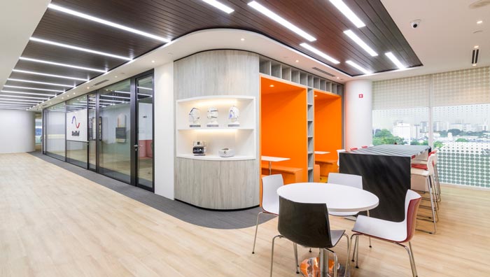 員工休息區域的設計:這樣的空間設計師將其安置在空間的每一個角落,這樣設計的目的就是希望給員工一個獨立的思考空間,在此次一個部門、志同道合的朋友,都可以在這樣的空間中討論和休息,這樣一來可以為創意提供一個成長的平臺,二來也可以增加企業內部的向心力。