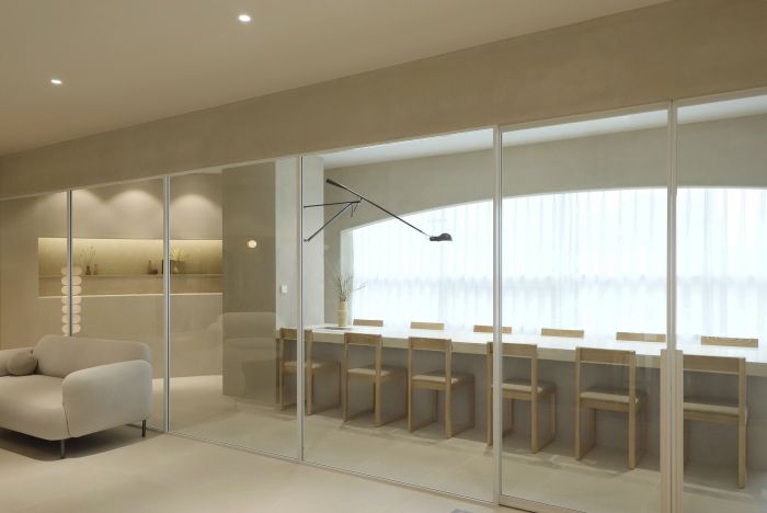 米色的色調(diào)和柔和的光線為空間營(yíng)造出舒適的氛圍。整個(gè)空間呈現(xiàn)出一種輕松、優(yōu)雅的感覺。 企業(yè)希望在為員工提供更好的工作環(huán)境的同時(shí),可以讓員工產(chǎn)生更多的靈感。設(shè)計(jì)師將自然元素和紋理放入空間中,希望為空間提供舒適而獨(dú)特的體驗(yàn)。