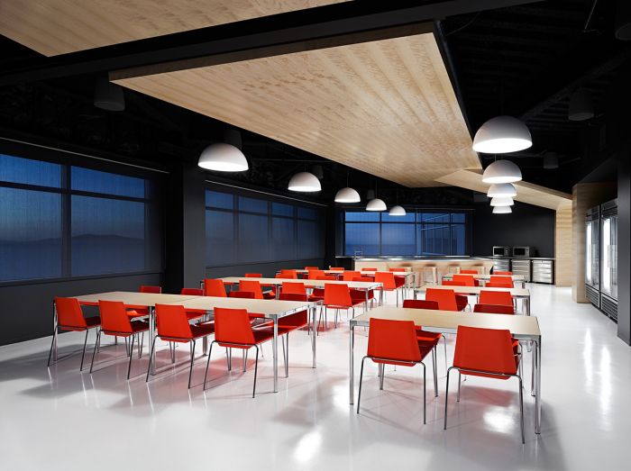 整個設計的空間感很強,線條硬朗,色彩柔和。在會議室和冥想空間內采用了品牌色,更加有品牌感。開放式咖啡廳可以作為大會議室和展示空間使用。