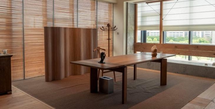 在材料上,鑲嵌在地面的來自海洋的貝類、直接從石場拉來的石方、北美松木清新的香氣,呼應著這個塑造“自然的形狀”的服裝品牌的質地。這些設置有利于有效率的工作和放松下來兩種狀態并存。我們希望它既能為工作提供便利性,但當你放松下來,這個辦公室又是一個令人感到舒服的地方。