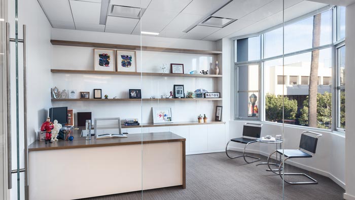 總經理辦公室的設計:設計師在設計的時候,將其安置在空間的邊緣位置,很多人看到邊緣位置就認為位置不好,其實并不是如此,只是因為總經理本人喜歡靜怡的空間,加上空間面的受限,此處也是總經理辦公室最好的選擇,因此此處的采光、環境都極好,是總經理辦公室的不二之選。
