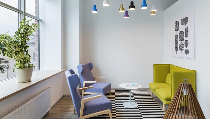 接待區(qū)域的設計:此處正對進門區(qū)域,設計師利用墻壁將其與其他空間進行分離,以此保證空間的獨立性,但是在設計上設計師特意保留了幾十公分的間隙,目的就是保證空間的通透性,一盆綠植為空間增添了一絲生機,設計師的想法就是以最小的搭配手法,讓空間更加有活力。