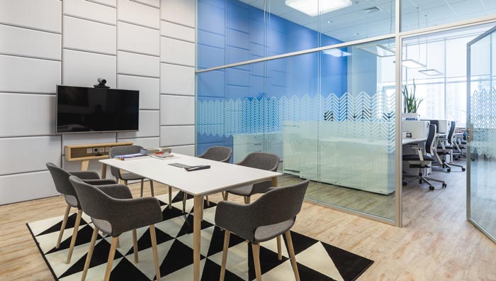 會議室的設計:此次位于辦公區(qū)域的一邊,這樣設計也是受到空間面積的限制,在玻璃隔斷上設計師采用了隔音玻璃,目的就是為了保證會議的正常運行,空間布局簡單、便捷,讓員工在這樣的空間中可以自由發(fā)揮,在設計師看來會議的開展正該如此。