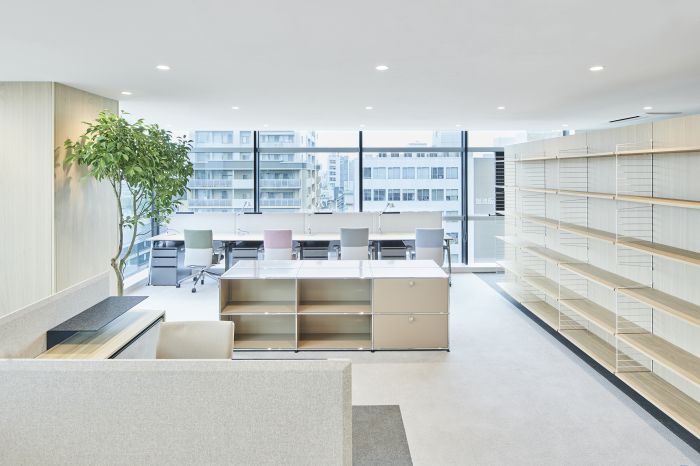 辦公室內部的布局非常簡潔,主要由會議、辦公區和獨立辦公室組成。辦公區設置了多個辦公桌和椅子,為員工提供了一個舒適的工作環境。為了使辦公室更加溫馨,設計師還添加了一些植物和藝術品。綠色植物可以增加空氣質量和美感,而藝術品則可以增加整個空間的藝術氣息。