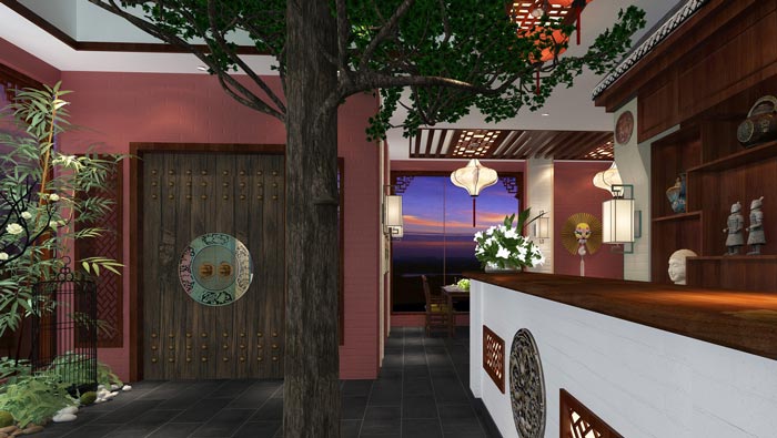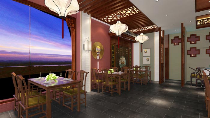 川菜館進門區(qū)裝修設(shè)計:客戶進入餐館后,空間給客戶的第一感覺就是鳥語花香,這意境、這景色、這氛圍,給客戶一個不錯的第一感覺,讓客戶喜歡這里,是設(shè)計的第一考慮。