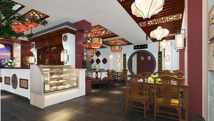 川菜館甜品區(qū)裝修設(shè)計:甜品受到很多人的喜愛,業(yè)主將其安置在這里,是做為贈送之用,當(dāng)吃飯之后,吃些甜品會讓人有一種幸福的感覺,種類雖不多,但卻都具有代表性。
