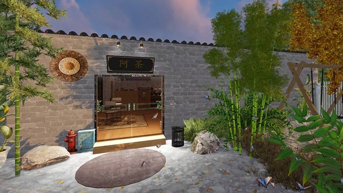 自助茶餐廳門頭設計:在城市之中這樣的房子基本絕跡,這里是在一個景區的內部,業主自己的老房子,經過重新的翻新與裝飾,各個地方都煥發了新的生機,空間、自然、人在這里和諧相處。