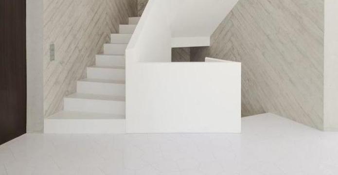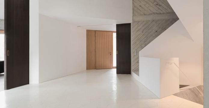 形式的統(tǒng)一體現(xiàn)在材料的統(tǒng)一上。厚厚的超輕質(zhì)混凝土自絕緣墻表面光滑并帶有紋理,而屋頂?shù)牡酌鎰t用粗糙的木板制成,強(qiáng)調(diào)了各個(gè)表面的方向。入口區(qū)域的地面上鋪了對(duì)角圖案的奶白色多邊形瓷磚。這些柔和的表面調(diào)和了奶白色石膏、灰色石頭和地毯的中性色調(diào),以及橡木和煙熏橡木飾物的自然色調(diào)。