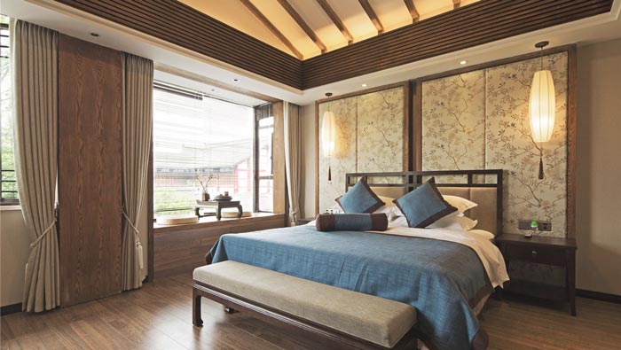 禪文化精品酒店二樓雙人客房裝修設計案例效果圖