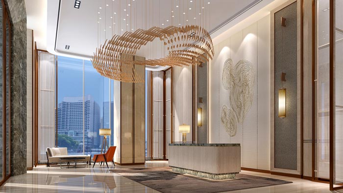 本次為商務(wù)精品酒店裝修設(shè)計(jì)項(xiàng)目,設(shè)計(jì)師在于客戶的交流中,了解到客戶希望打造一個(gè)商務(wù)型精品酒店,客戶希望將現(xiàn)有的商務(wù)酒店進(jìn)行一次升級(jí)與嘗試,設(shè)計(jì)師對(duì)此進(jìn)行了深入的研究,最后設(shè)計(jì)師用超凡脫俗的品質(zhì)感來(lái)烘托酒店的身份,如此的奢華看似低調(diào),卻能夠深入人心,給人留下深刻印象。