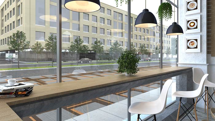 街角的咖啡店整體設計:設計師需要的不僅僅是室內的設計,同時也需要與室外進行連接,戶外的陽光、建筑都在設計師的預想之中,設計師要做的就是將設計與周圍相互融合。