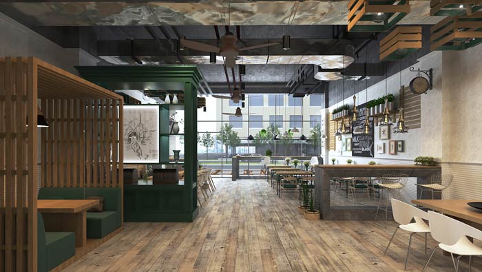 街角的咖啡店色彩設計:縱觀空間可以發現這里的色彩以深綠色、淺黃色為主,這里給人的第一感覺就是一種回憶的顏色,在這里大家回憶著曾經的過往,在這里完成一次心靈的沉淀。