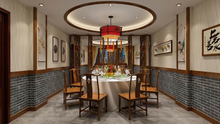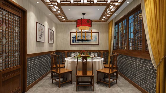 農家私房菜內包廂設計:內包廂相對于外包廂相對小一些,這里可以容納8個人,內部中式、外部現(xiàn)代,讓人在古代、現(xiàn)代之間感受到生活的變換,在這里享受生活的美好。