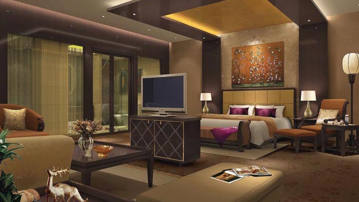 總統(tǒng)套房臥室的設(shè)計(jì):靜怡是此處給人的感覺(jué),在這里給人的感覺(jué)不僅是安靜,而更多的是文化的熏陶,床邊的躺椅讓他們躺在那里看書(shū),閱讀書(shū)籍是一種享受,在設(shè)計(jì)師看來(lái)書(shū)籍是連接古代先賢的重要媒介,在這里顧客的心可以完全安靜下來(lái),去體會(huì)心外無(wú)物的哲學(xué)問(wèn)題。