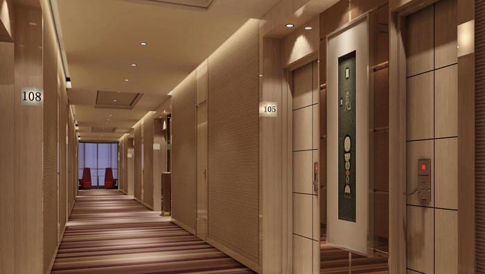 走廊的設(shè)計(jì):我們?cè)诖颂幍谝谎劭吹降木褪欠块g標(biāo)志,這也是設(shè)計(jì)師特意為之,因?yàn)樵谠O(shè)計(jì)師看來(lái),酒店的優(yōu)點(diǎn)是大而全,但是缺點(diǎn)就是房間過(guò)多,會(huì)讓顧客感受無(wú)所適從,在尋找房間的過(guò)程中會(huì)遇到很大的阻力,這也是現(xiàn)在酒店設(shè)計(jì)中都會(huì)注意的一點(diǎn),此處設(shè)計(jì)師采用柔光與空間的對(duì)比,讓顧客可以輕松的知道自己在那里,讓客戶(hù)不會(huì)迷失。