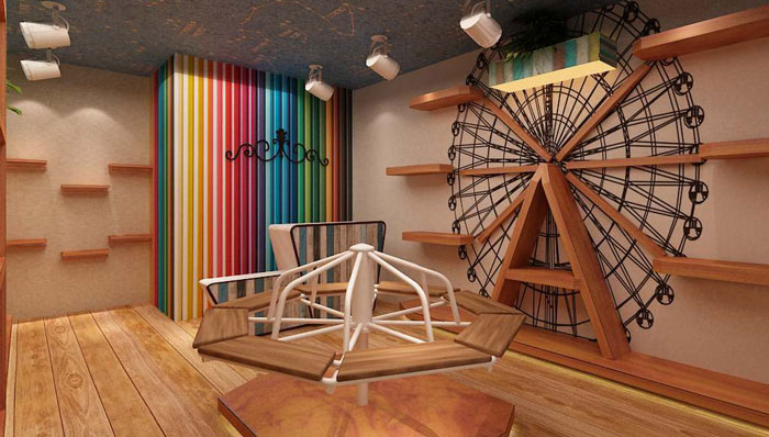 設(shè)計理念:設(shè)計師在室內(nèi)設(shè)計的時候,加入了童話的元素,感覺進(jìn)入到童話的世界一般,引起人們對童心,不管是小孩還是大人都有自己的童心所在,設(shè)計師希望可以借此增加店鋪的魅力。