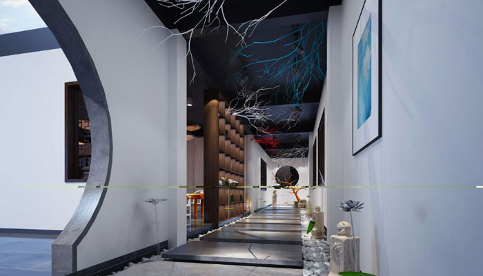 設(shè)計(jì)理念:設(shè)計(jì)師在國(guó)學(xué)館之初,經(jīng)過(guò)和業(yè)主之間的交流,了解到業(yè)主希望可以在空間內(nèi)融入禪的定義,希望空間內(nèi)部可以處處透漏禪機(jī)。