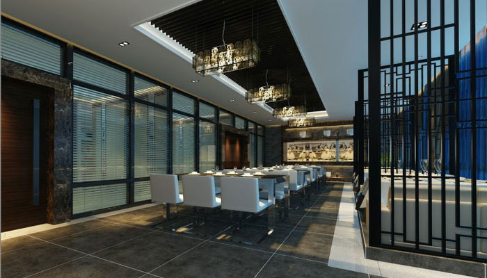 再比如封閉式包廂,說(shuō)它是封閉式,但它又不完全由實(shí)墻圍合,該空間運(yùn)用了鏤空水泥磚來(lái)做走道整墻造型,包房與包房之間用部分磨砂玻璃隔斷,在保證包房一定私密性的同時(shí)增添一點(diǎn)神秘感,有別于傳統(tǒng)意義上的包房,相信在這樣的環(huán)境下用餐令人耳目一新。