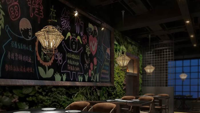 特色主題餐廳墻體設計:舌尖記憶的老味道,好吃吊炸天,兩種不同的說話方式,在這里得到很好的融合,既有回憶的美好,又有現在的美好,一切的一切完美融合。