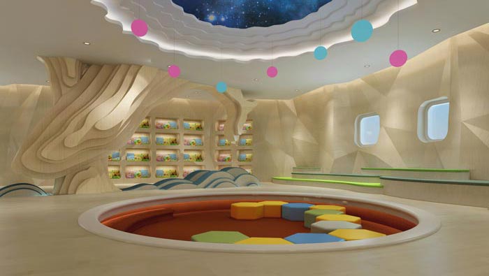 本次為早教繪本館裝修設計項目,繪本館也是在最近幾年開始普及大中城市,這對于繪本館的設計就有了新的要求,由于繪本館的對象多是0-12歲的兒童,這就要求設計師要多考慮到孩子的安全度與舒適度,同時裝修也要溫馨、活潑,引發幼兒的興趣,如此才能在眾多繪本館脫穎而出。